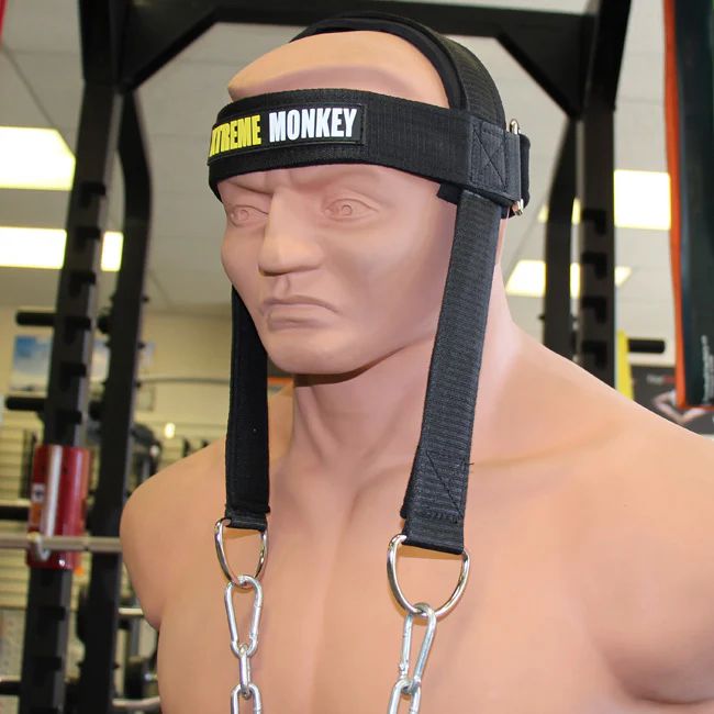 Xtreme Monkey's head harness can hold more weight than your neck can manage: The weight is suspended by a spring-loaded clip and the harness itself is fully adjustable, courtesy of a velcro fastening system at the back.