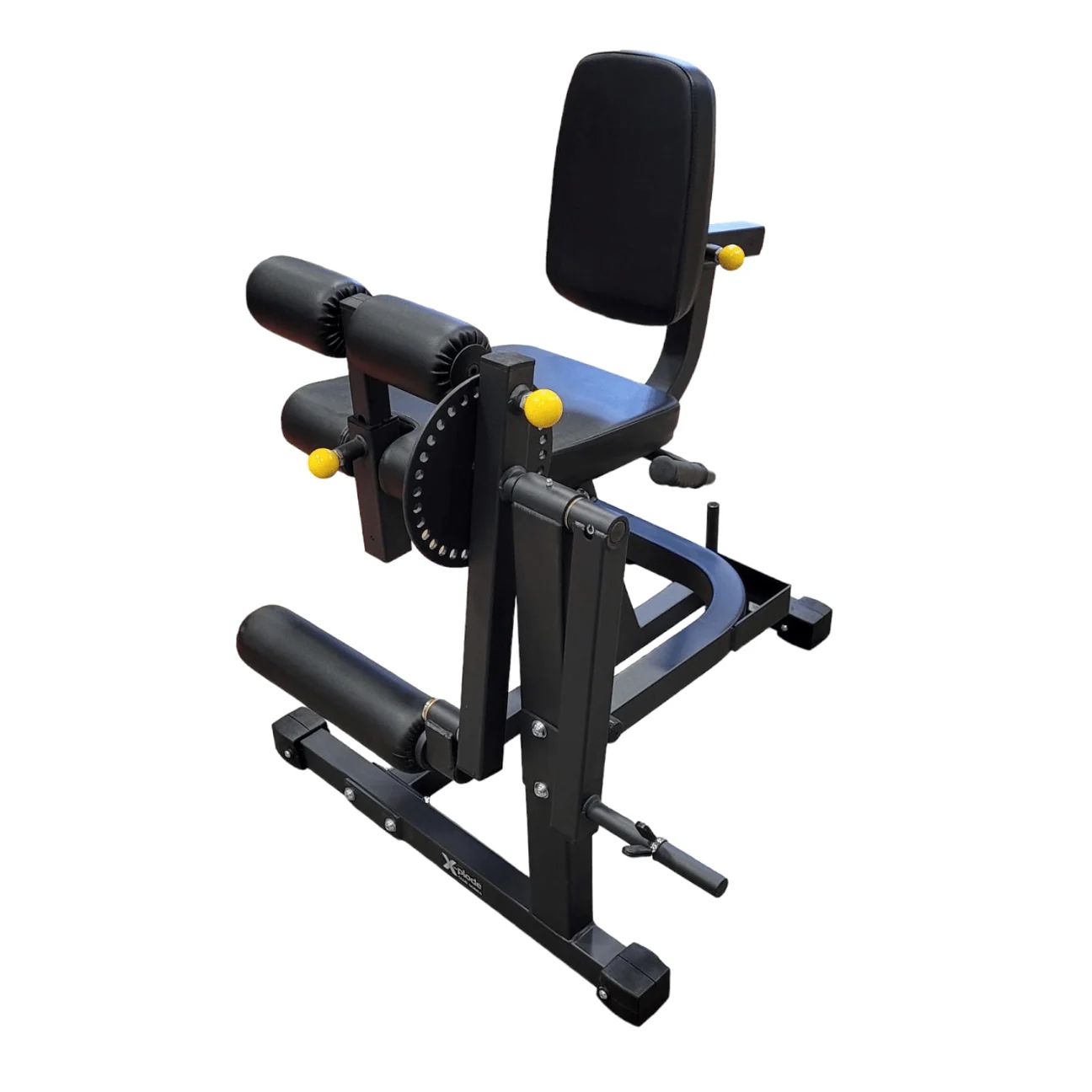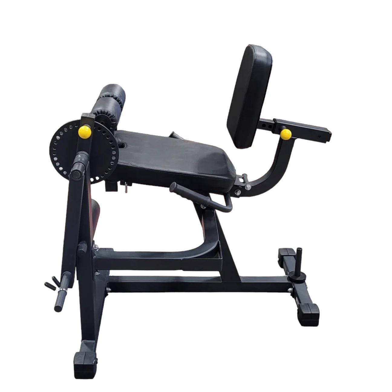 With up to 300 LB of plate-loaded resistance, this machine provides a comprehensive lower-body workout. It targets a Latin dictionary of muscles, including biceps femoris, semitendinosus, rectus femoris, and vastus lateralis.