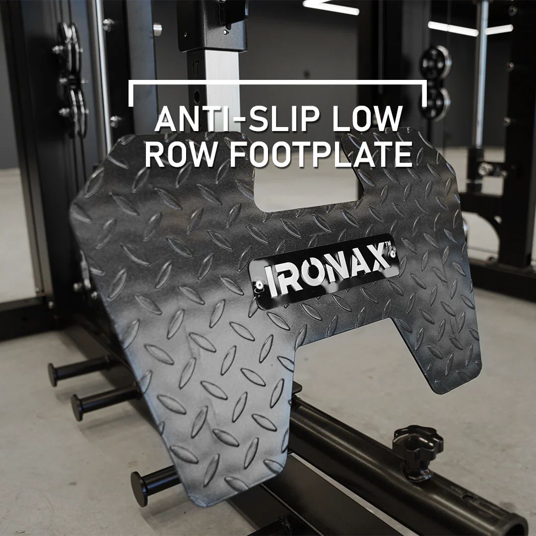The removable low row footplate offers a textured, anti-slip surface to ensure secure footing and added stability during seated or low-position exercises.