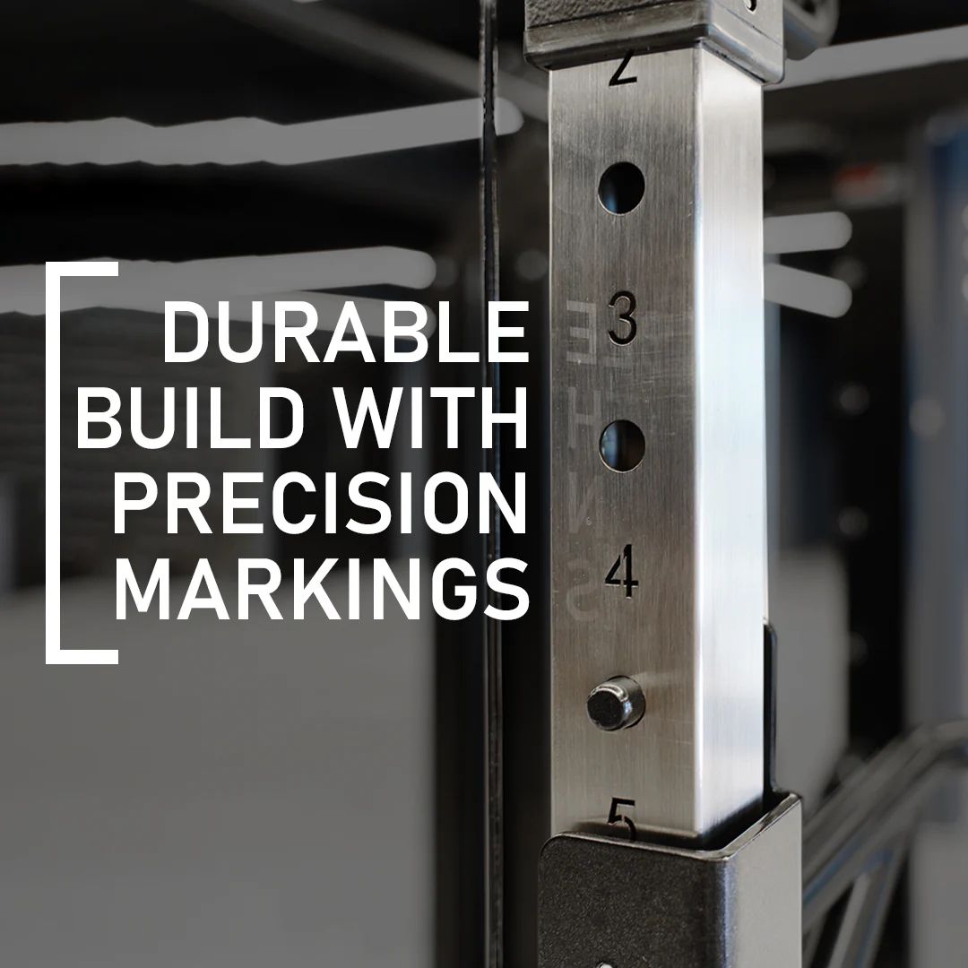The robust steel uprights feature a high-quality finish and etched weight markers for long-lasting durability and clear visibility.