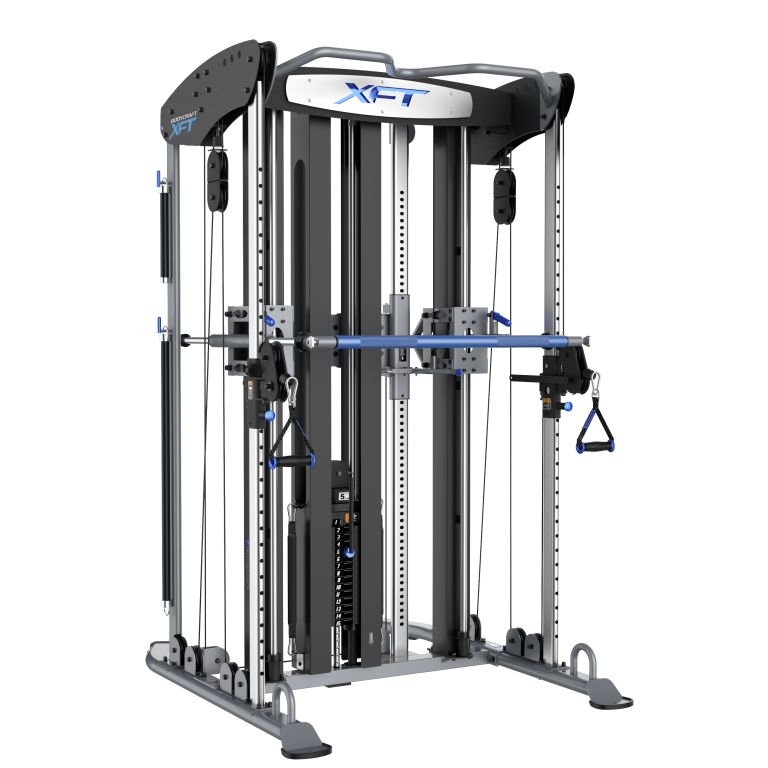 Whether you’re an elite athlete or just starting your fitness journey, the XFT is engineered to help you achieve and surpass your goals. Key features include a rotating blue anodized barbell with counter-weighted quick-adjust carriage, dual locking barbell levers for stable movement, and dual front adjustable pulleys with 32 height positions and laser-etched chrome cable columns.