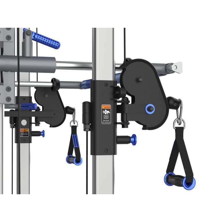 • Dual Swiveling Pulleys: 32 height positions with laser-etched cable columns.