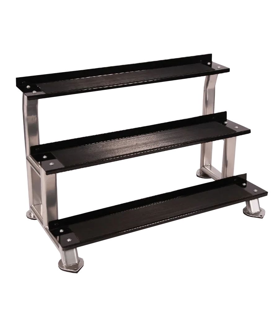 This 3-tier rack with solid shelves is ideal for storing kettlebells or dumbbells to keep your space organized.