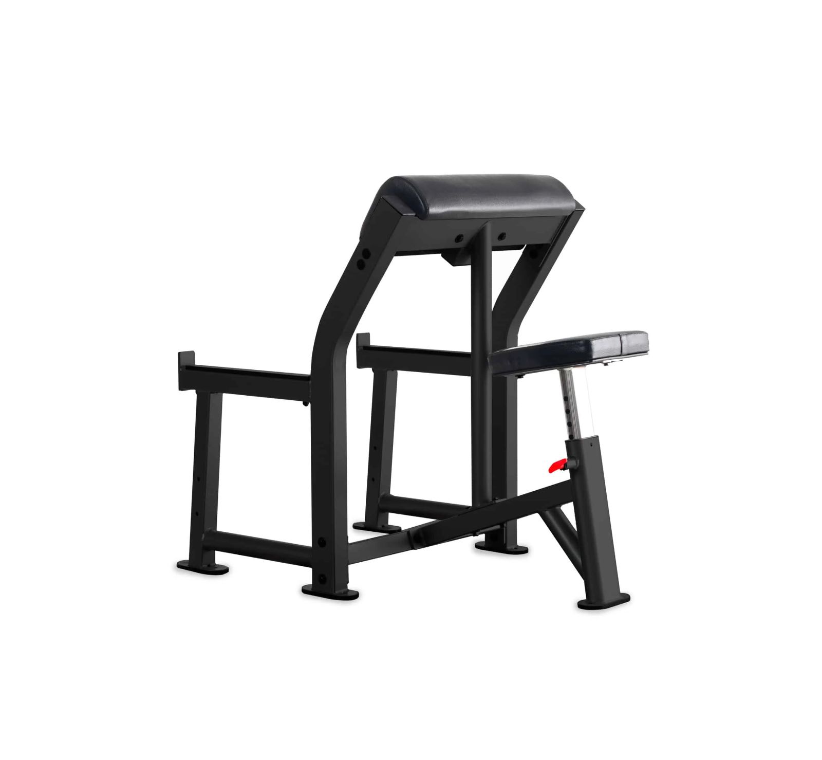 Build bigger, stronger biceps with the Preacher Curl Bench. This bench is designed for easy access and maximum comfort while you work out. With seven-seat heights to choose from, it’s perfect for users of all sizes. Thick protective guards on the bar rails ensure safety while you lift. Optional weight horns are available for convenient plate storage. Get the most out of your workout with the Preacher Curl Bench.