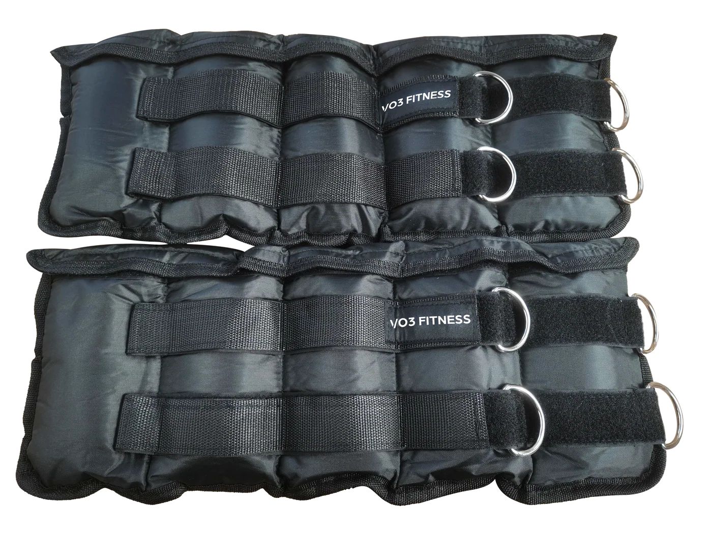 Enhance your workout routine by adding the VO3 Adjustable Ankle/Wrist Weights to your fitness equipment. VO3 Fitness Adjustable ankle and wrist weights are perfect for strength training, rehabilitation and weightlifting exercises.  The 2x 10lb ankle weights are constructed of heavy-duty nylon canvas for rugged durability, with easily removable weight sticks for comfort. Strong, easily adjustable Velcro closures secure the weights in place on your ankles or wrists.