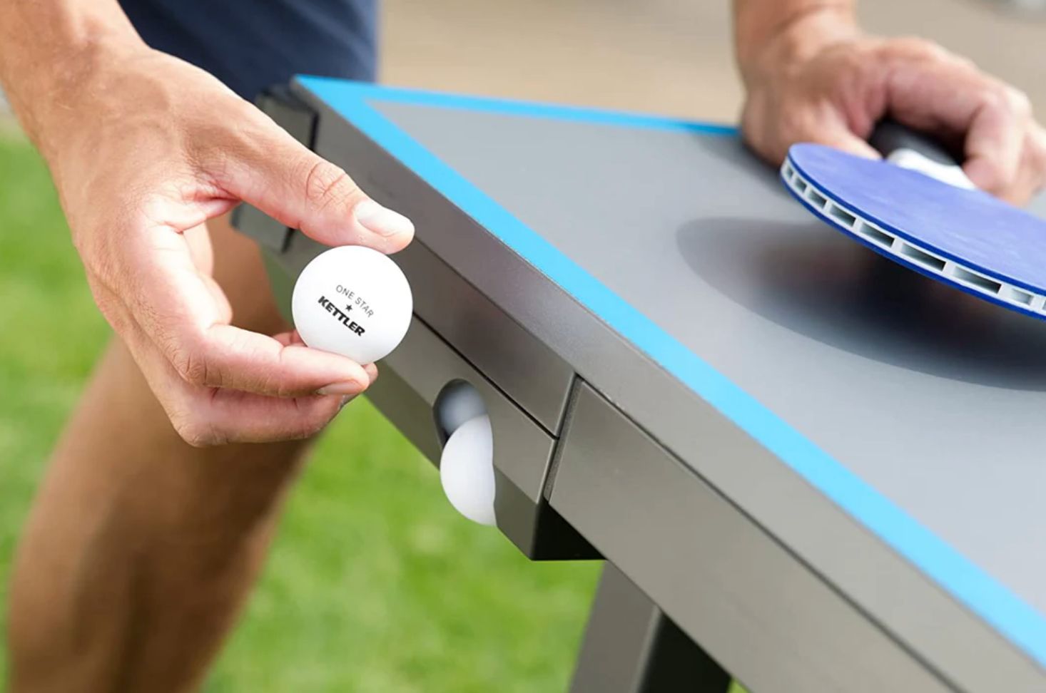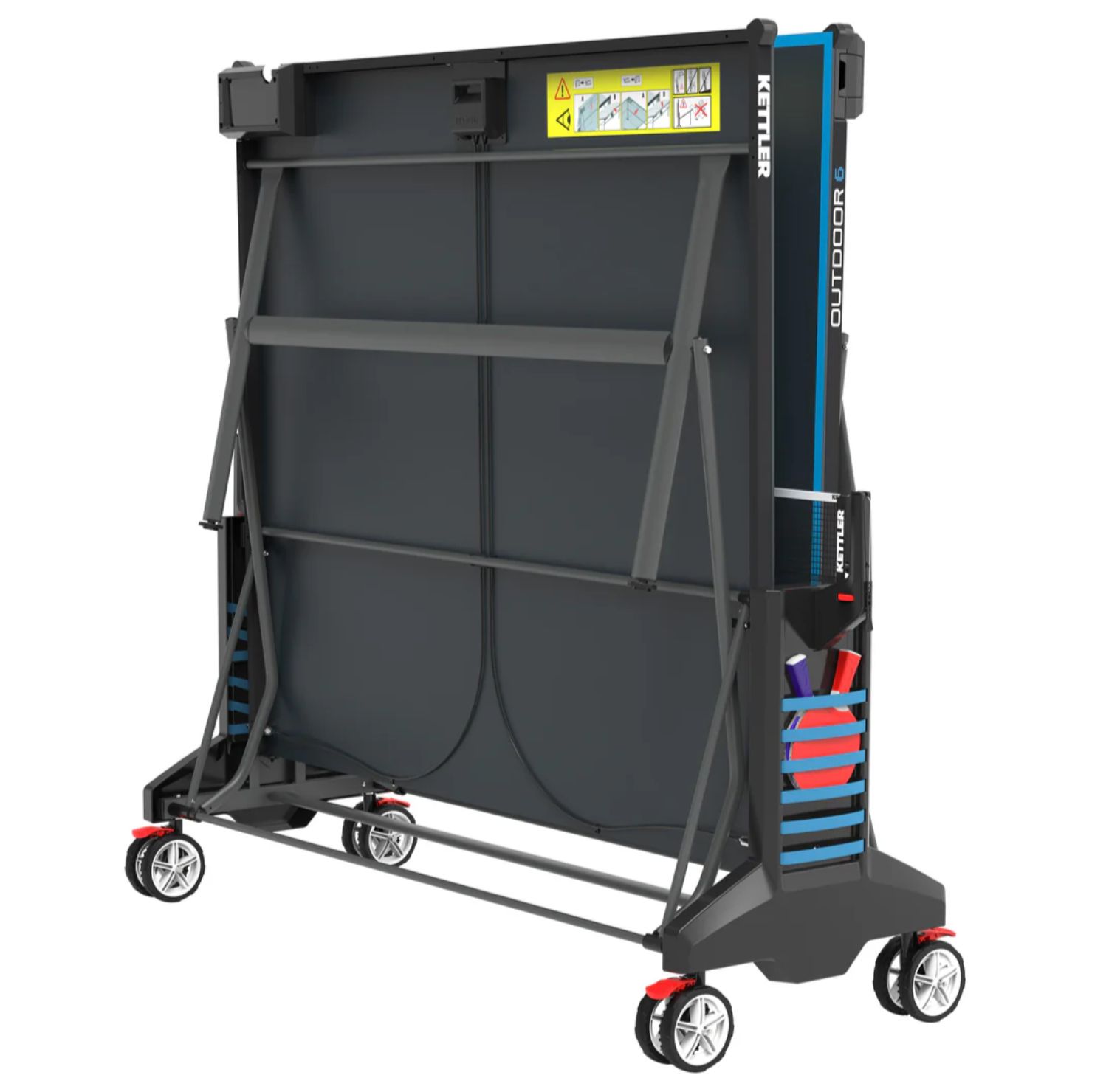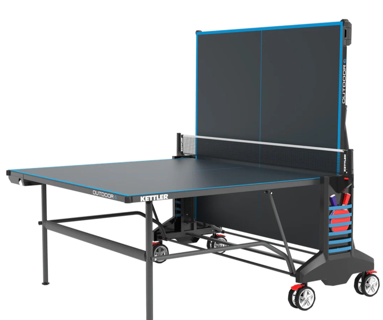 The KETTLER OUTDOOR 6 offers state-of-the-art technology and all the brand’s well-known features. Its KETT-TEC6 outdoor weatherproof top provides durability for outdoor use and offers high performance with true ball bounce. The OUTDOOR 6 includes a one-hand locking mechanism for safe, secure and compact storage, a permanent net system, true play back position for solo play and large wheels with off-road tread for easy transport.