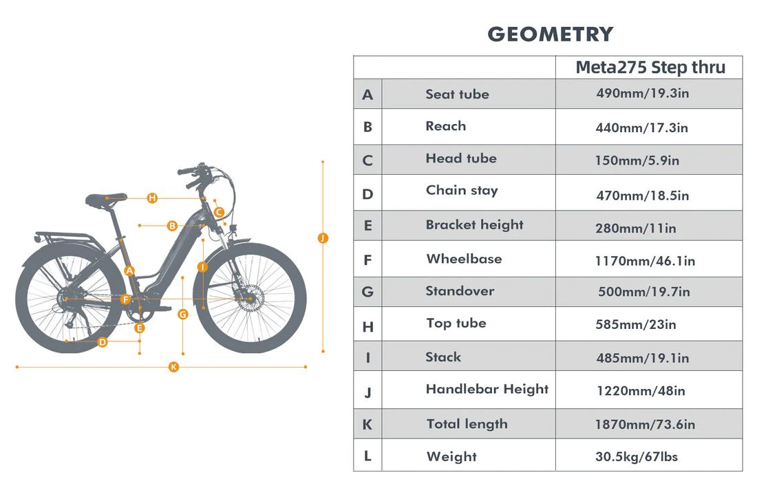 Eunorau META275 Electric Bike | 500 W | Up to 104 km Battery Range | 32 km/h Top Speed