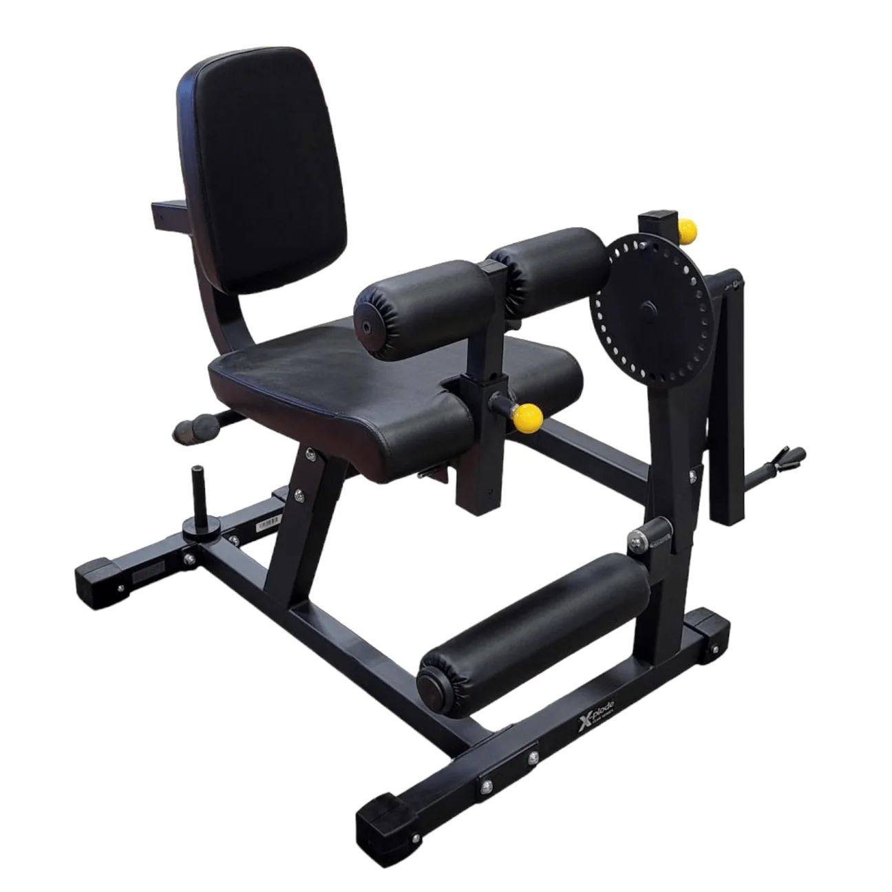 With up to 300 LB of plate-loaded resistance, this machine provides a comprehensive lower-body workout. It targets a Latin dictionary of muscles, including biceps femoris, semitendinosus, rectus femoris, and vastus lateralis.