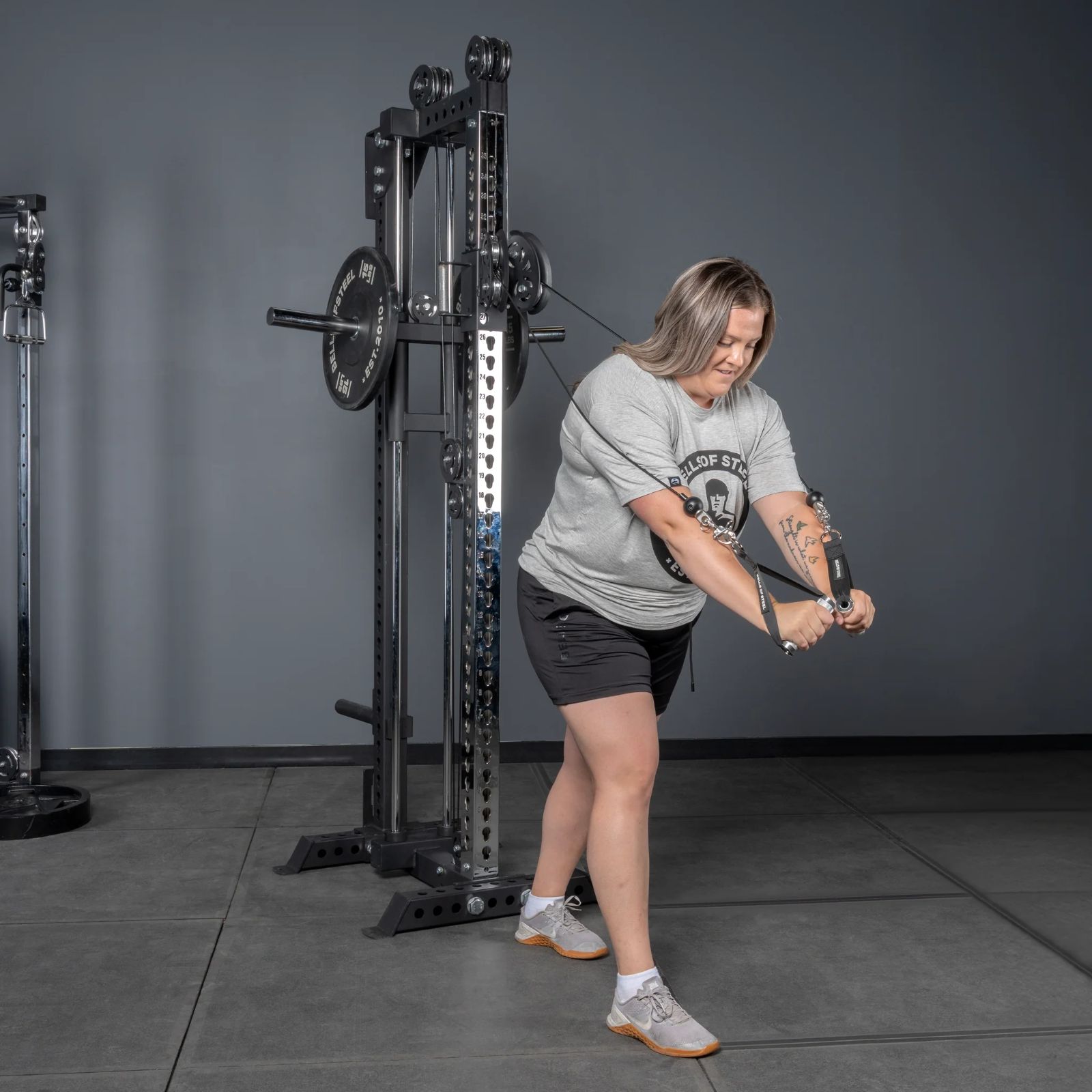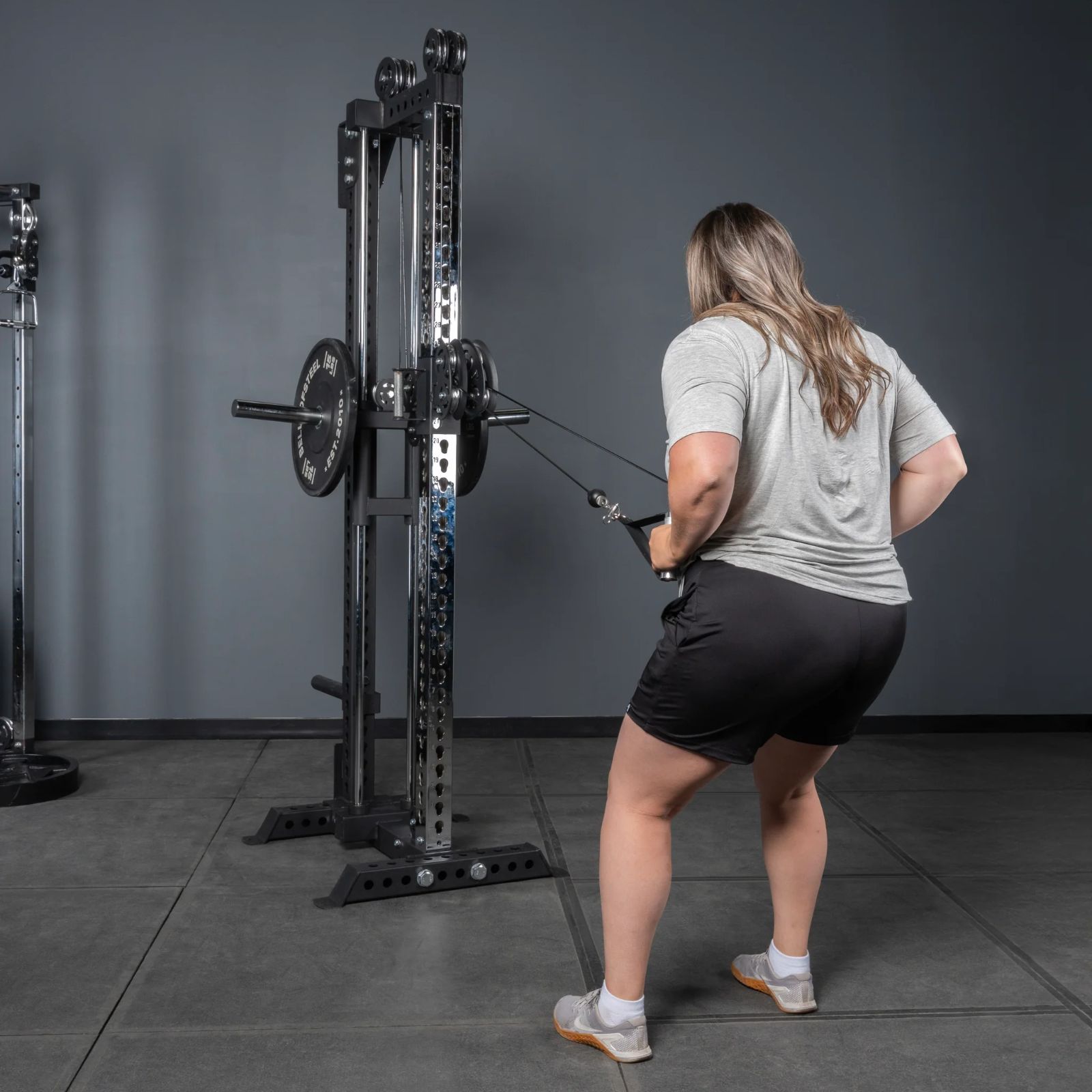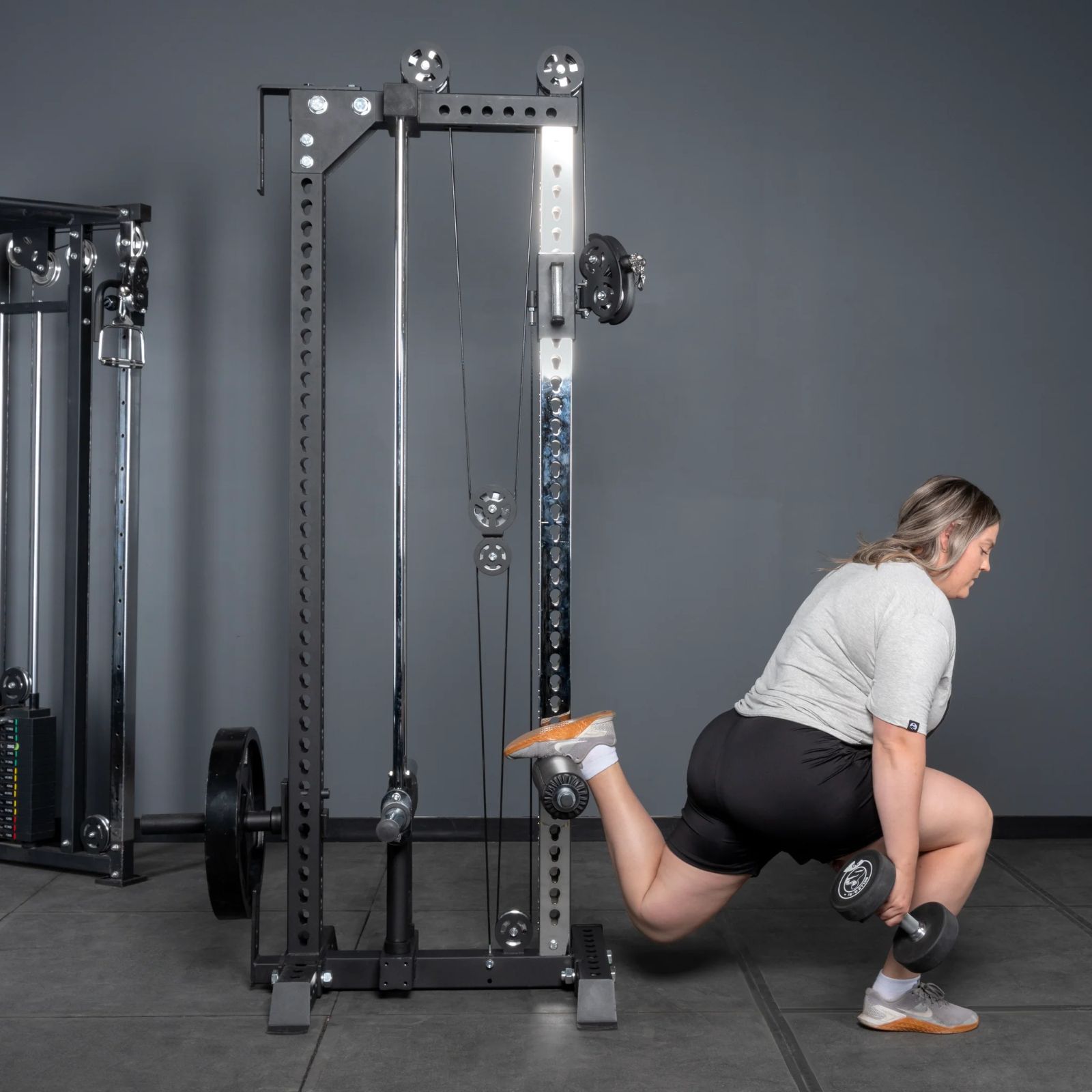 The 3" x 3" Cable Tower, AKA the Oblivyon Tower, is a home gym cable machine that’s compact enough to fit your garage but beefy enough to hit some heavy weights. Built with 3x3" uprights, this bad boy is triple-c thiccc where it counts and won’t jiggle like your favorite childhood dessert under pressure.