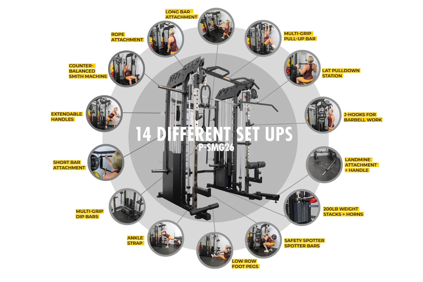 With the ability to perform over 100+ exercises from compound lifts to isolation work the P-SMG26 is engineered to meet the demands of personal training facilities, wellness centers, and serious home gyms. Designed for versatility, durability, and consistent performance, it’s the ultimate strength solution for high-traffic, multi-user environments.